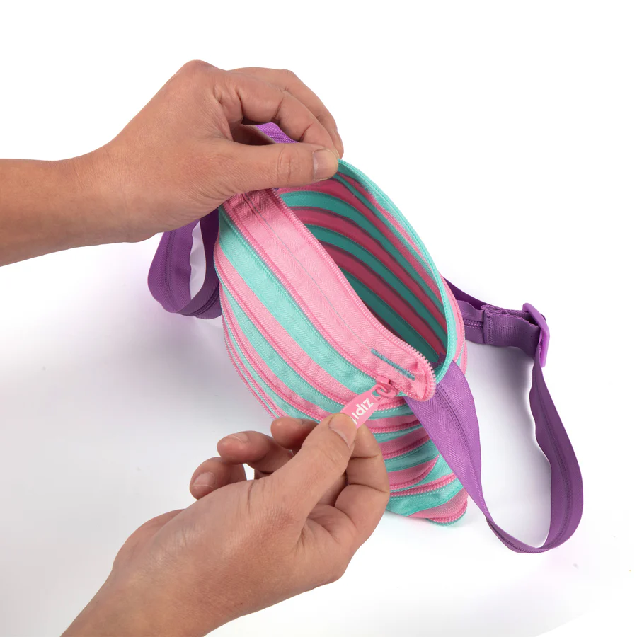 With an adjustable strap for crossbody or shoulder wear, it’s sized just right for girls to carry essentials hands‑free. The bag is machine washable for easy care and backed by ZIPIT’s lifetime warranty, combining playful design with lasting durability.